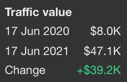 It contributed to overall organic growth over 180%. The page ranking for TS specifically jumped in value by nearly $40K since last year and indexed an additional 1,000+ keywords on the site.